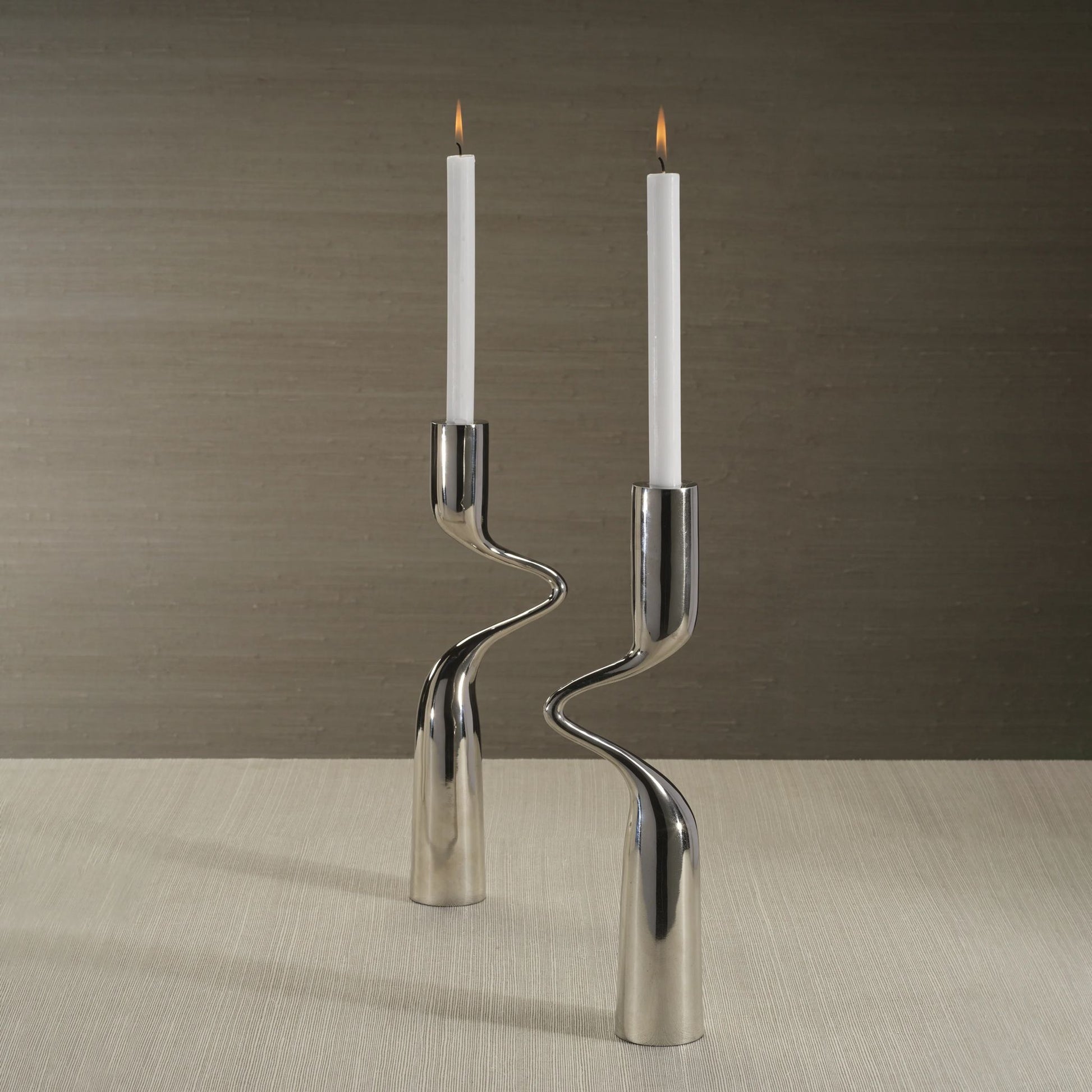 Set Of 2 Liaison Candle Holder Polished Nickel 7" x 15"